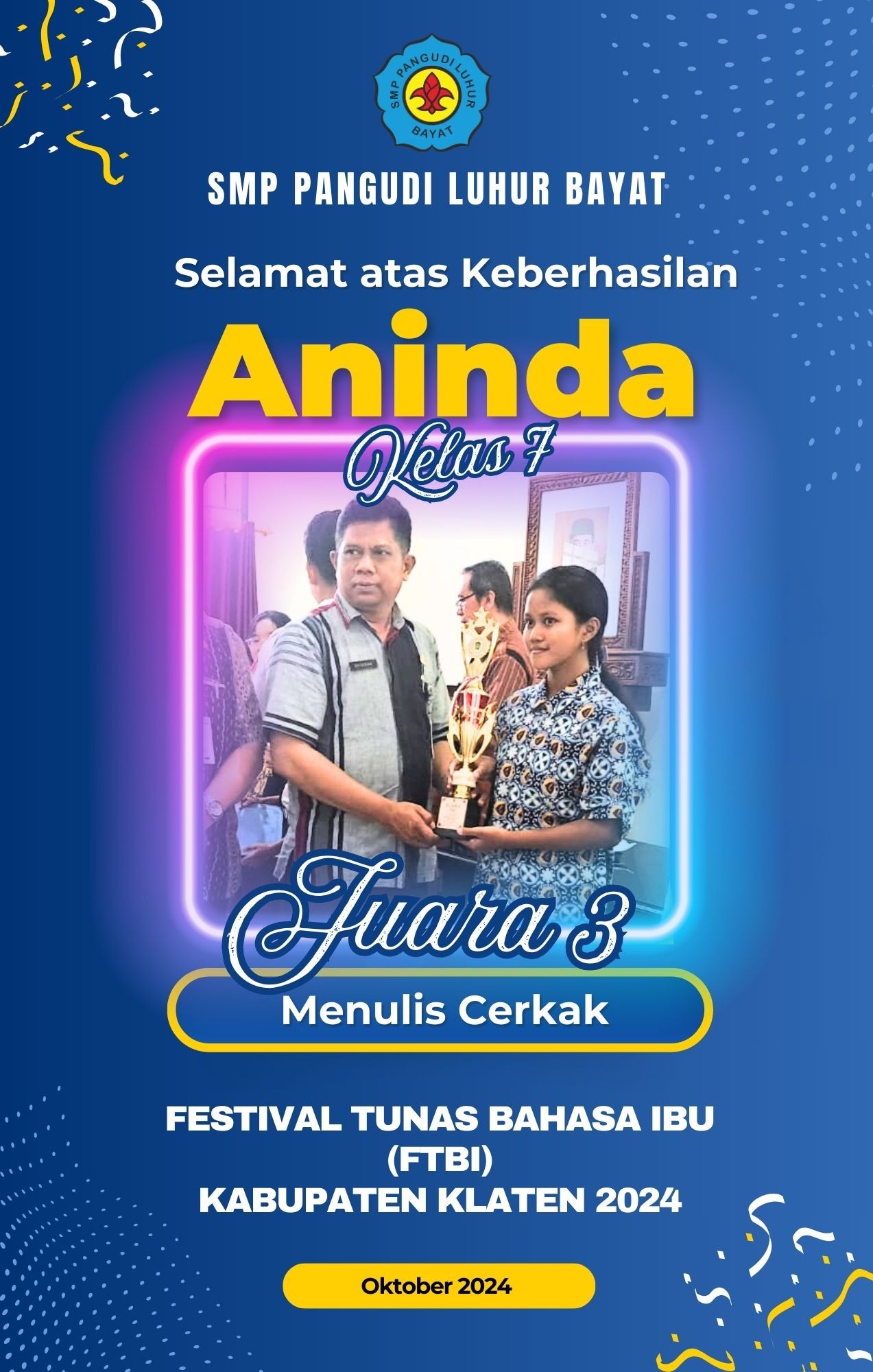 Informasi Juara 3 Lomba Menulis Cerkak - FTBI Kabupaten Klaten 2024
